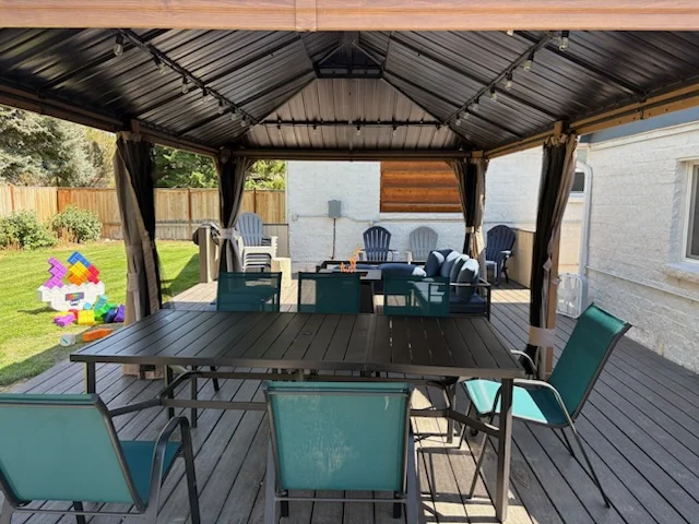 Tucked away in a fenced, private setting, the patio gathering space at Wagon Wheel Cottages & RV Park is designed for relaxed, worry-free outdoor time. The covered patio offers shade and comfort in any weather, while the fire pit creates a natural spot to gather in the evenings. With a grill and smoker available, it's perfect for cooking out, sharing meals, and lingering over good conversation. Whether you're hosting a casual cookout or unwinding after a day in the mountains, this private space invites you to settle in and enjoy the moment.
